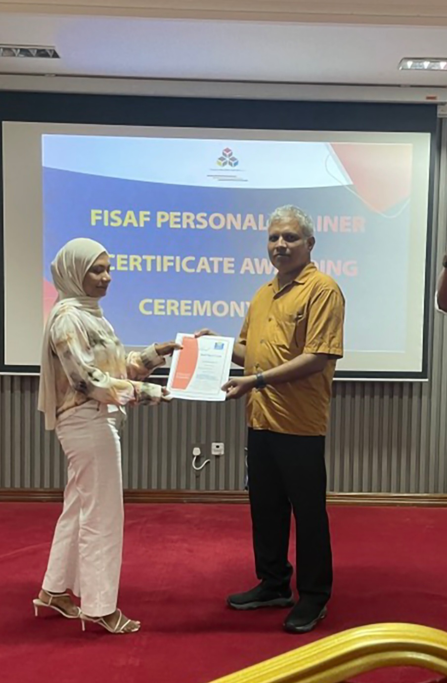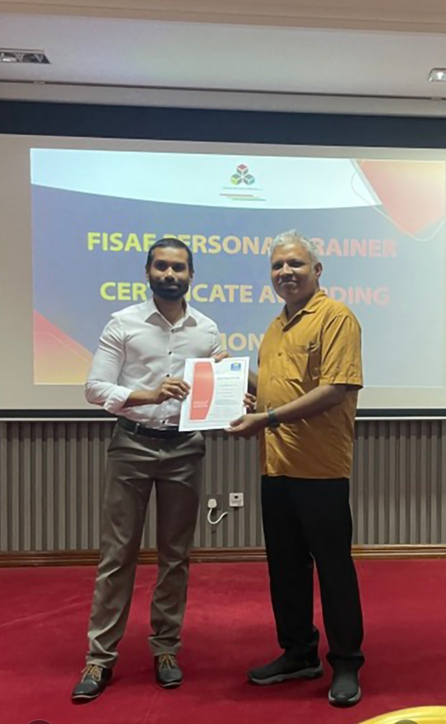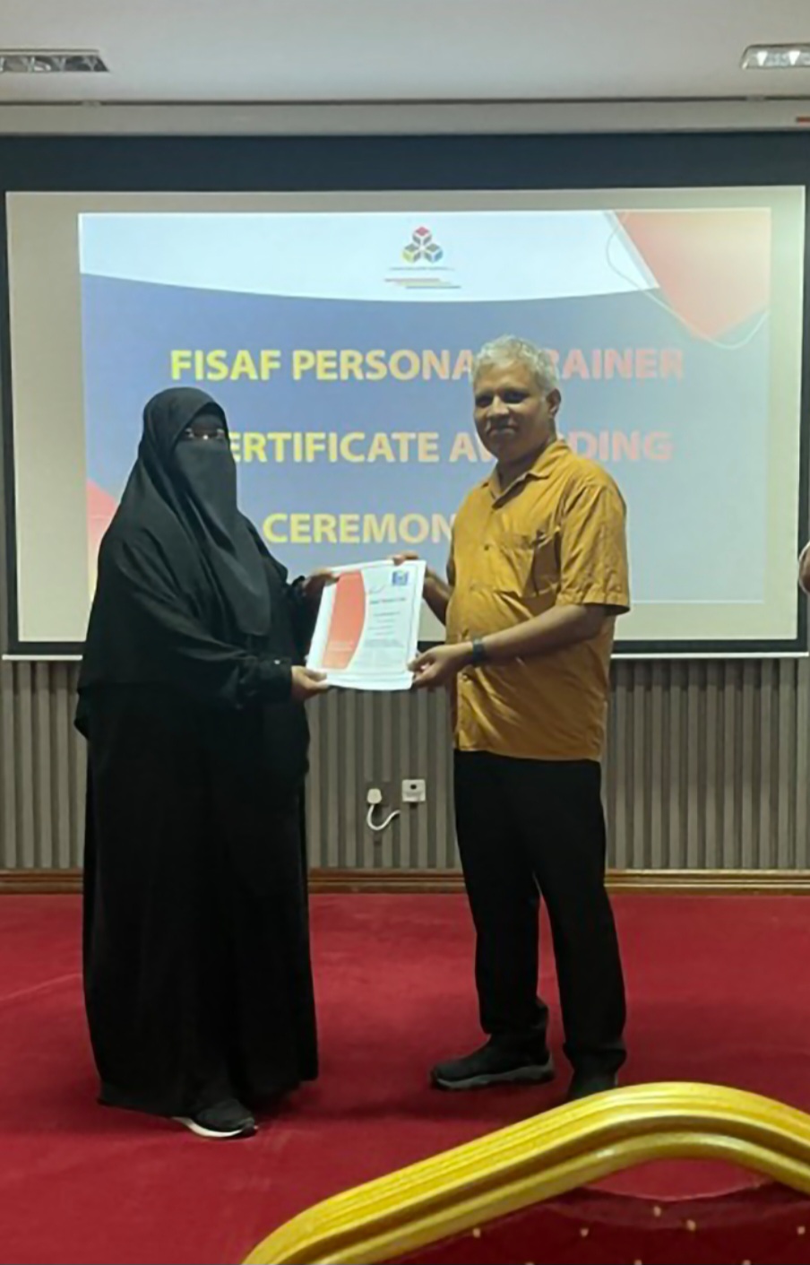 In a remarkable achievement, NES Institute, in collaboration with AZM T & C, celebrated the successful completion of its inaugural batch of the Federation of International Sports, Aerobics, and Fitness (FISAF) Personal Trainers course. A ceremony held on August 17, 2023, marked a momentous occasion as sixteen graduates were presented with certificates from FISAF, officially certifying them as personal trainers.