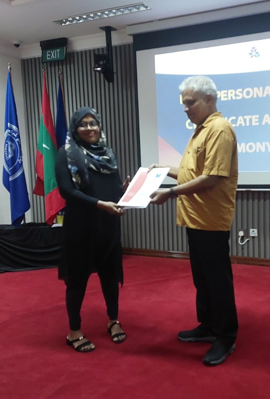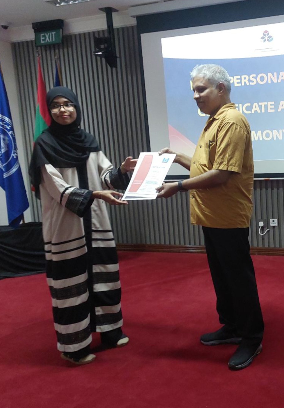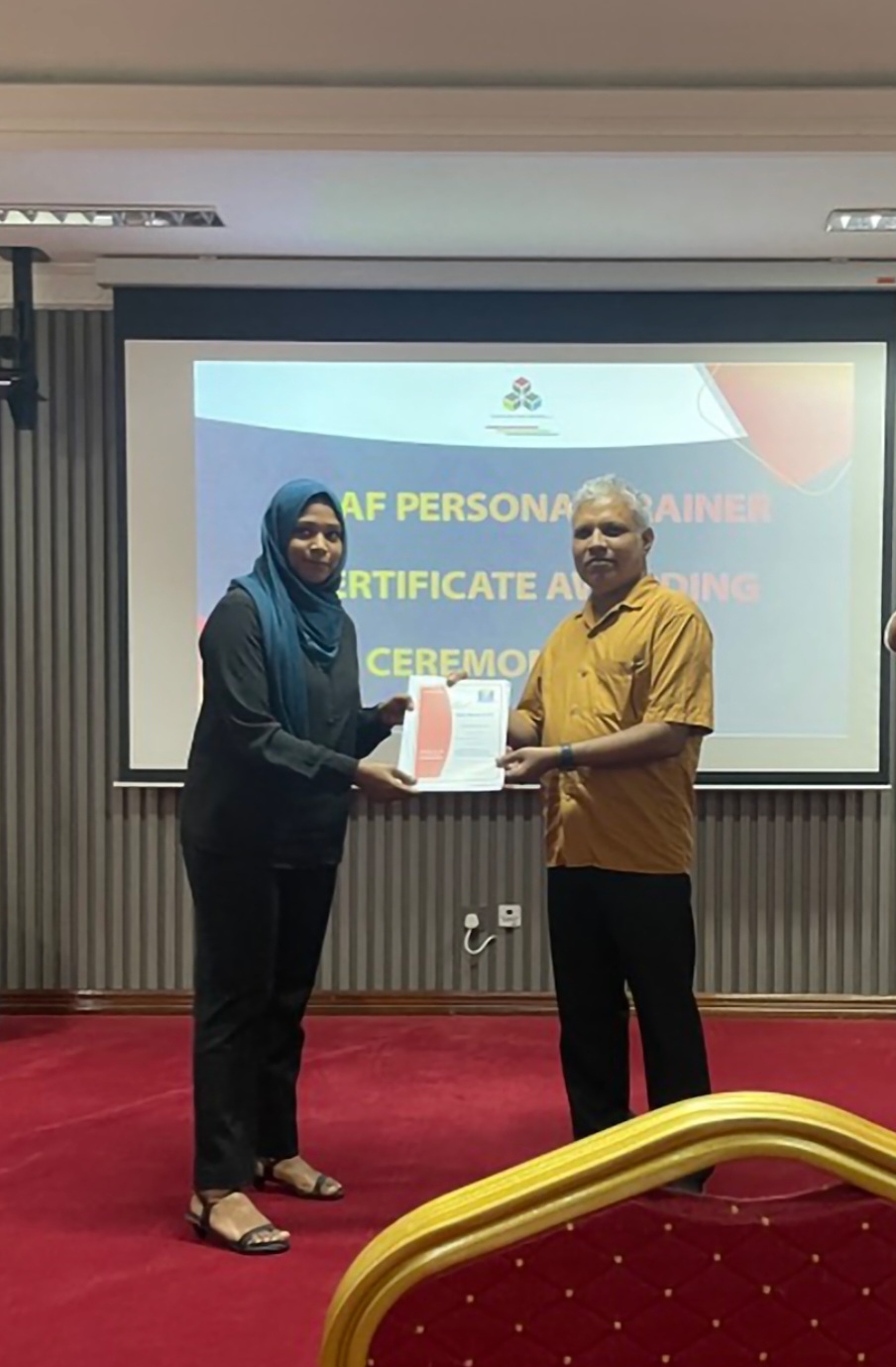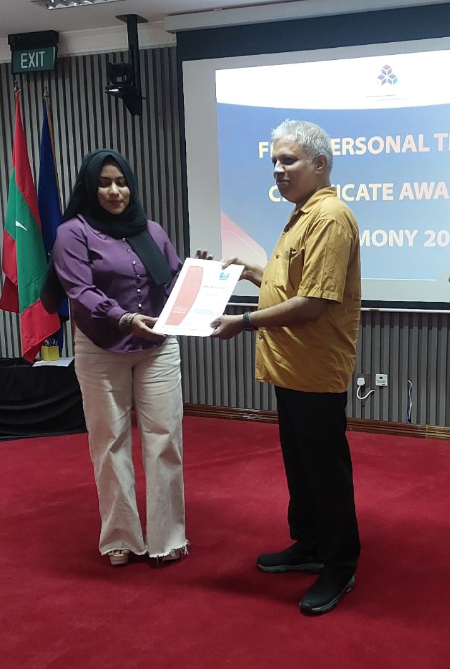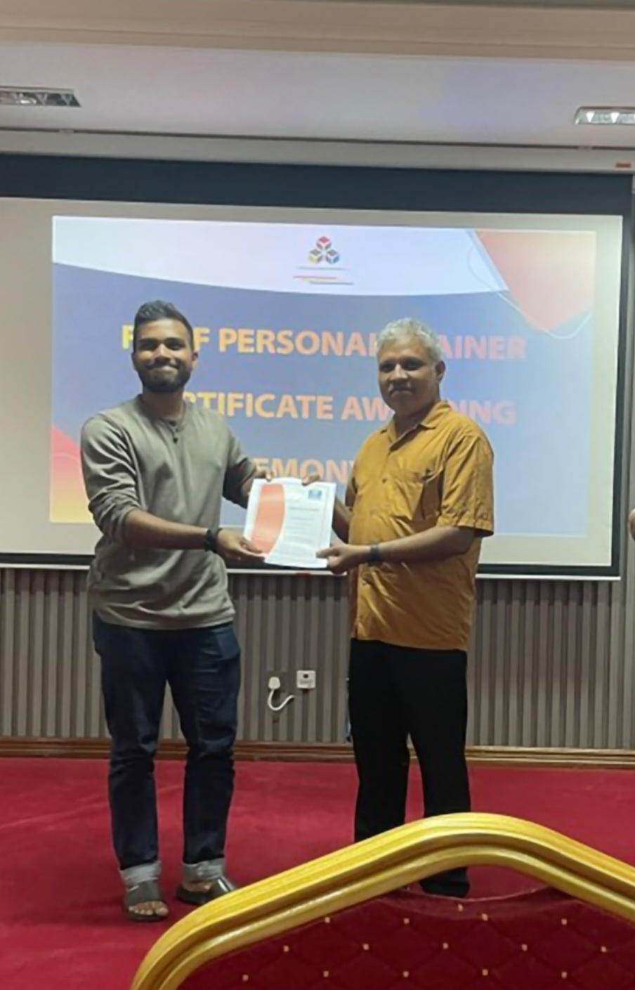 The event was graced by the presence of Dr. Mohamed Shareef, Vice Chancellor of the Maldives National University, who attended as the chief guest. Dr. Shareef commended the graduates for their dedication and commitment to promoting fitness and health in the community.